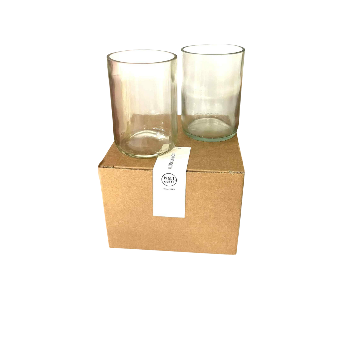 Stílhrein glös sem eru búin til úr endurnýttum hvítvínsflöskum. Glösin eru botninn úr hvítvínsflöskunni. Hvert glas er einstakt og ber með sér fallega sögu endurnýtingar.