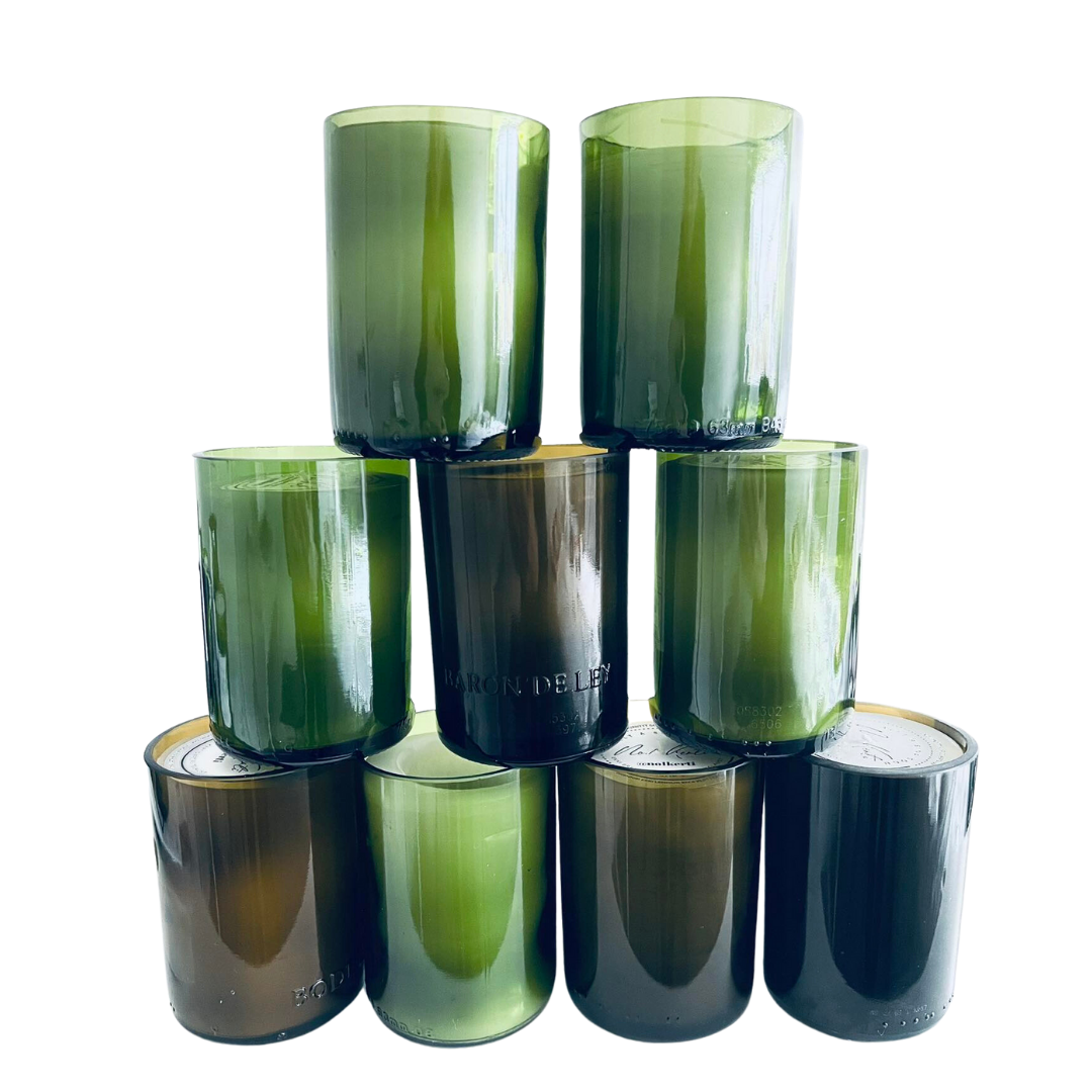 Glerin eru í grænum og brúnum tónum og eins og allar fallegar kampavínslöskur þá er botninn kúptur.